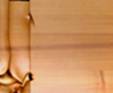 ci et là des œuvres en cèdre colorées d’un léger voile de teintures délicates